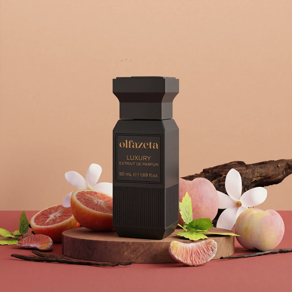 Een bedwelmende, warme en fruitige geur, waarin sappige perzik samenkomt met een hart dat bloemige noten van jasmijn combineert met alcoholische noten van rum en cognac. De laatste golf van patchoeli, sandelhout, kasjmier en vetiver betovert de zintuigen en gaat samen met de zoete noten van vanille en tonkaboon.